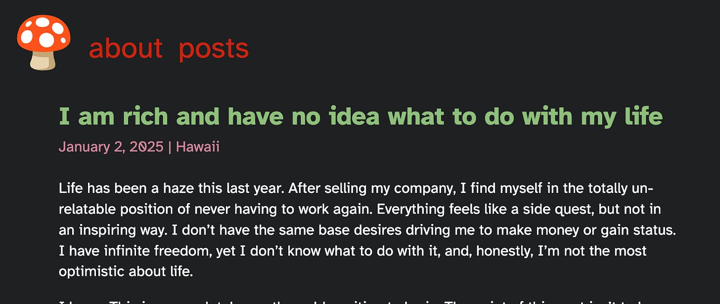 Do you remember the Loom founder from a few months ago who was rich, but felt lost? He came up on a podcast I was recently interviewed on.